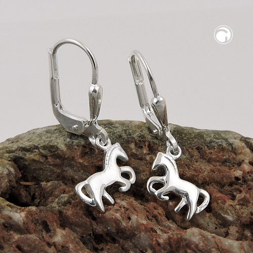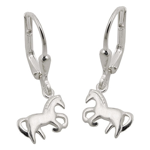 Das Glück dieser Erde liegt auf dem Rücken der Pferde! An dieser wunderschönen, glänzenden Ohrbrisur in Sterling Silber 925 pendelt ein freudig galoppierendes, stilisiertes, ca. 9x7mm kleines Pferdchen, Rückseite verbödet (glänzend glatt geschlossen), gearbeitet in hochwertiger Juwelierqualität und wird bestimmt das neue Lieblingsschmuckstück vom kleinen Pferdemädchen! Ohrringe mit Klappbügel sind besonders gut für Kinder geeignet. Der Verschluss hält sicher am Ohr und verhindert das Pieken am Hals. Ein ideales Geschenk für die kleine Pferdenärrin zum Geburtstag, Schuleinführung oder einfach mal als kleine Überraschung zwischendurch.